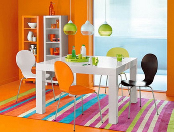 Επίσης, σημειώστε ότι το πράσινο χρώμα στη διακόσμηση της εισόδου κάνει τον επισκέπτη σας να αισθάνεται ότι είστε ένα άτομο γενναιόδωρο και αγαπάτε να υποδέχεστε τους φίλους σας στο σπίτι σας. Στο σαλόνι, το κίτρινο χρώμα δίνει ζωντάνια στον χώρο και ο καθένας αισθάνεται μια καλή διάθεση, γιατί γεμίζει το χώρο με μια χαρούμενη ατμόσφαιρα. Τα μπεζ είναι πάντα κατάλληλα για τα καθιστικά, αλλά προτίμησε να το συνδυάσετε με ένα ή δύο άλλα έντονα χρώματα. Για την τραπεζαρία, το πορτοκαλί χρώμα είναι άριστο να κάνει επισκέπτες σας να αισθάνονται άνετα και να μην είναι ντροπαλοί, αλλά πρέπει να ξέρετε ότι πορτοκαλί και κόκκινο είναι τα είδη των χρωμάτων που κάνει τους ανθρώπους να τρώνε πιο γρήγορα! Προσθέτοντας μερικές πράσινες αποχρώσεις μπορεί να περιορίσει την επίδραση του κόκκινου χρώματος και κάνουν το δωμάτιο πιο ήσυχο και πιο άνετο. Στη διακόσμηση της κουζίνας, όταν χρησιμοποιούμε μπλε χρώμα αυτό μπορεί να μην είναι κατάλληλο, επειδή αυτό το χρώμα είναι χαλαρωτικό και μειώνει την ταχύτητα που χρειάζεστε στην κουζίνα για να λειτουργήσει πιο γρήγορα, και μπορεί να κάνει την προετοιμασία του φαγητού να πάει πιο αργά.