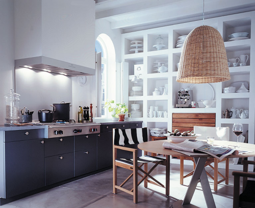 - Χρησιμοποιήστε σκούρα ντουλάπια σε μια μικρή κουζίνα. Οποιαδήποτε μικρή κουζίνα φαίνεται μεγαλύτερη, αν τα ντουλάπια είναι πιο σκούρα από τον πάγκο και τον τοίχο.