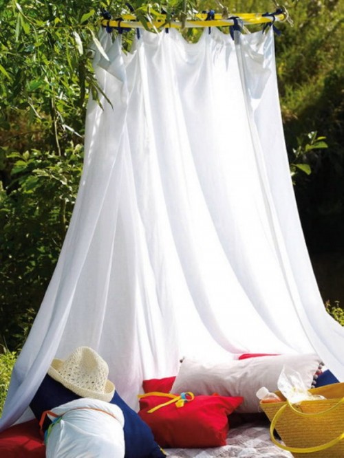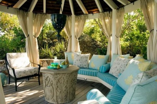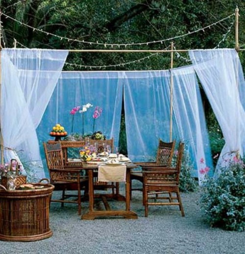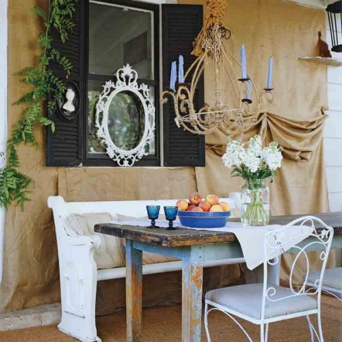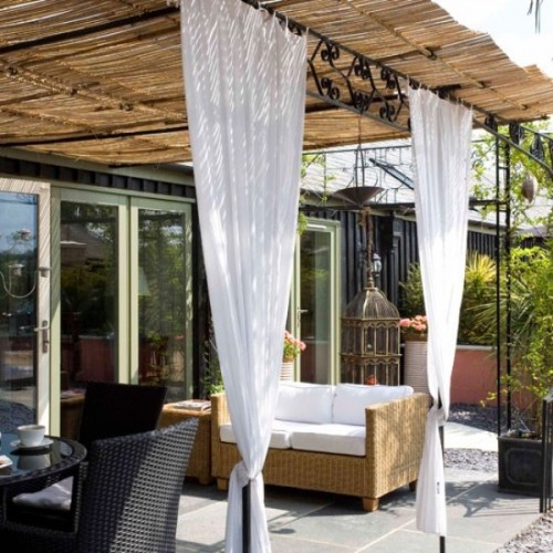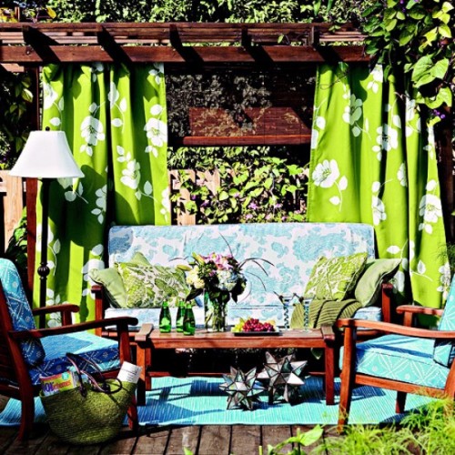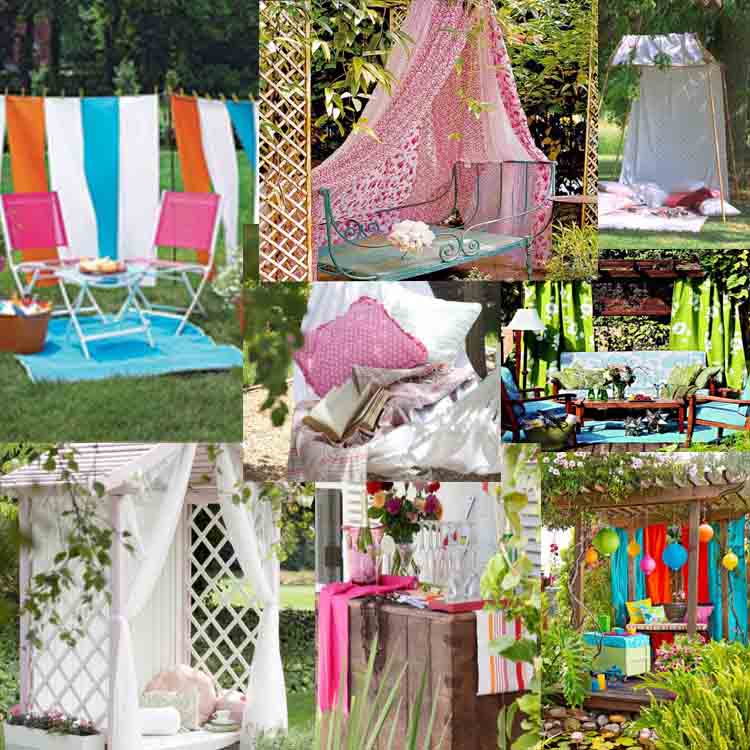 Πώς μπορείτε να προσαρμόσετε κάποιο όμορφο ύφασμα στη βεράντα ή στον κήπο σας για να κάνει την όψη του πιο πρωτότυπη; Εδώ είναι μερικές ιδέες για το πώς να το κάνουμε αυτό. Χρησιμοποιήστε κάποιο ύφασμα ή κουρτίνα στη βεράντα.
