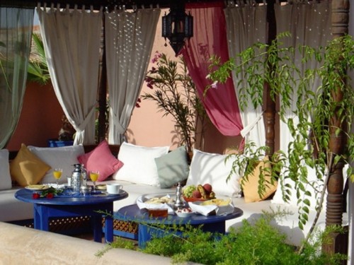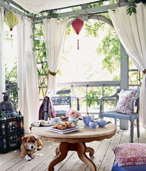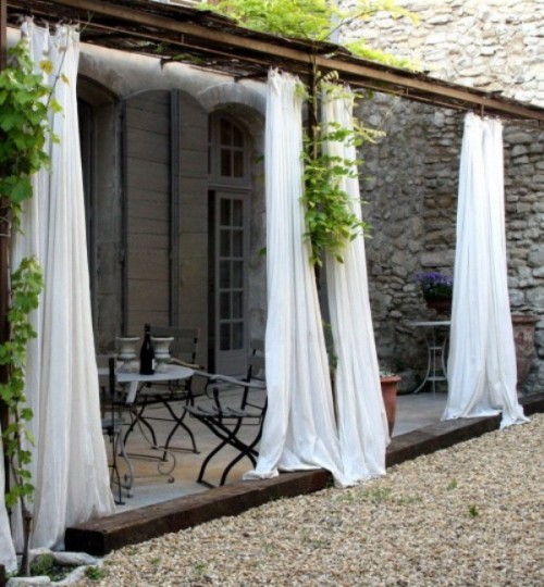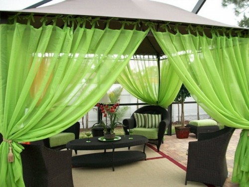 Μπορείτε επίσης να διακοσμήσετε την είσοδο στην βεράντα με πλούσια σε χρώματα κουρτίνες -